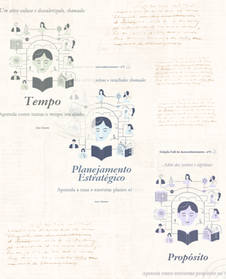 Eu tenho escrito livros para uma coleção que, carinhosamente, dei o nome de Café do Autoconhecimento, e o livro n°2 dessa coleção é sobre planejamento estratégico. Essa coleção é composta por e-books interativos, que trazem assuntos de grande relevância para a qualidade de vida e desenvolvimento pessoal, como planejamento estratégico, propósito de vida, gerenciamento das emoções (a ser lançado), atenção (a ser lançado), memória (a ser lançado).